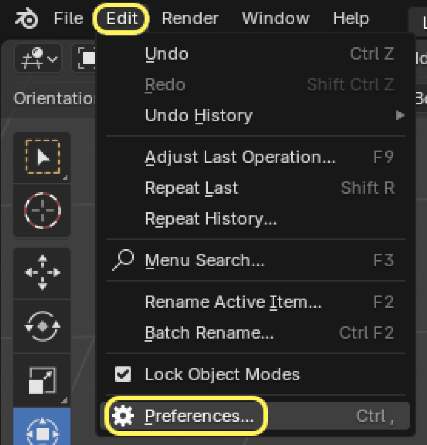 Edit→Preferencesを選びます。
